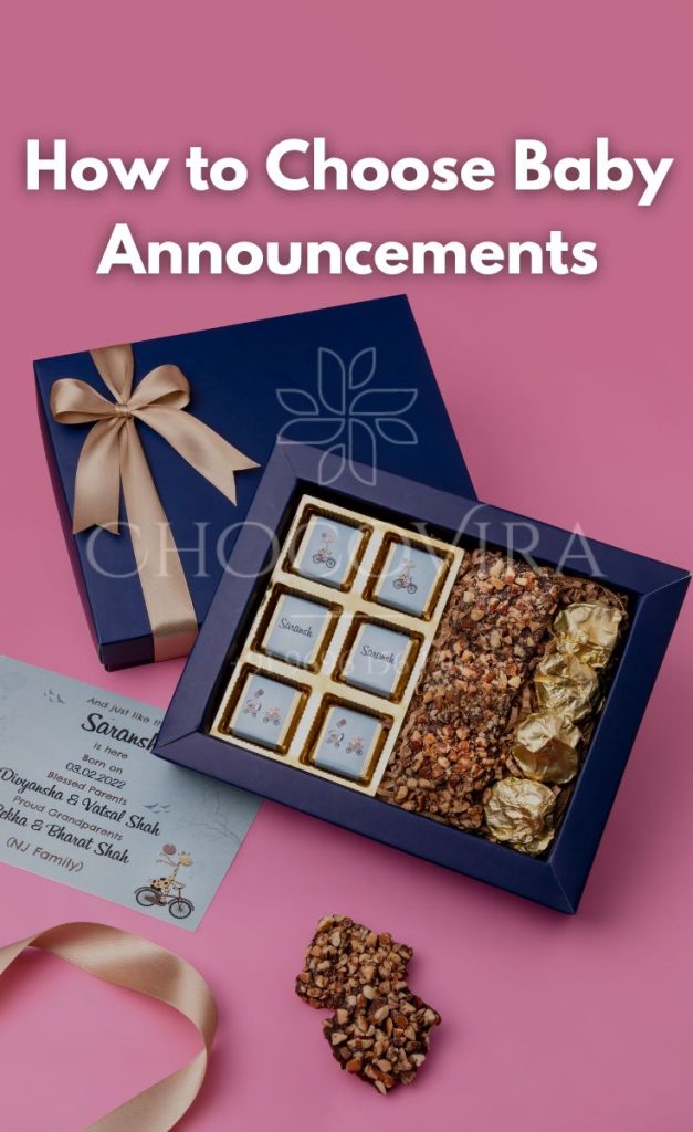 There are many ways to send these announcements, such as a postcard, chocolates, gift baskets, goodies, or even just a photo over Whatsapp. It all depends on your budget. E-cards are more pocket friendly and can be sent in a matter of seconds whereas a paper announcement is a classic way of announcing and it makes a great keepsake for your family members and friends.