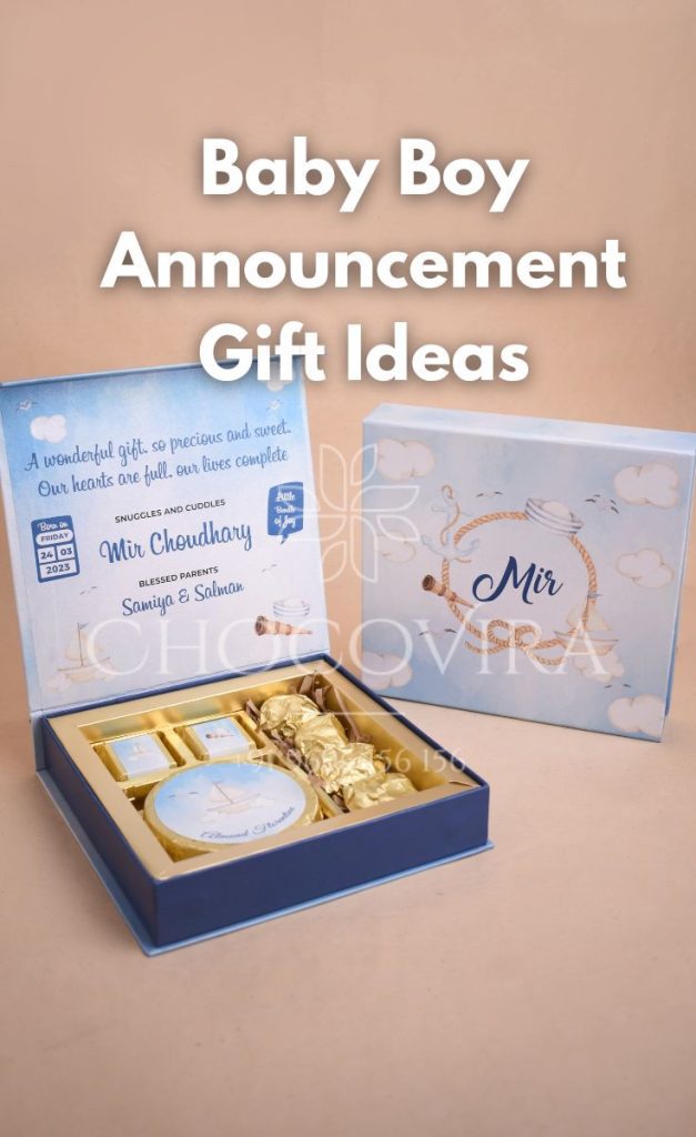 Parents can send personalized chocolate boxes with a picture of their precious baby on the box. Chocovira.in has a wide range of chocolates to choose from. They specialize in customized chocolate boxes and have a wide range of exciting flavors to choose from. Imagine how amazing it would be to receive a box of chocolates to see a beautiful baby boy on the cover. Friends and family will already be eager to catch a glimpse of the sweet baby. This is a thoughtful and sweet option to announce the birth of the baby boy.